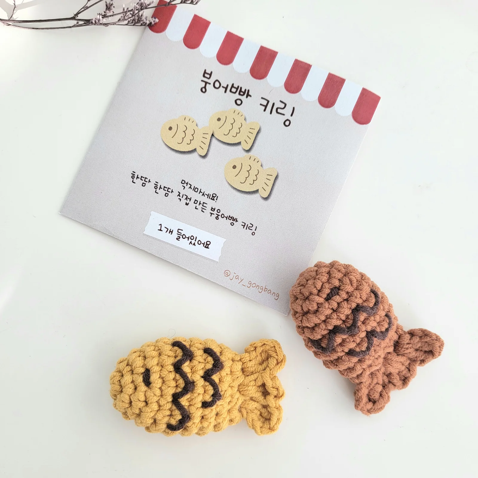 붕어빵 키링 옆에 놓인 작은 포장지를 보니, 진짜 붕어빵 가게에서 파는 듯한 느낌이 듭니다. '붕어빵 키링'이라고 적힌 빨간 줄무늬 포장지는 마치 포장마차의 따뜻한 정취를 그대로 옮겨놓은 것 같습니다. 6cm x 3.5cm라는 아담한 크기지만, 붕어빵의 특징적인 비늘 무늬와 둥근 형태가 꼼꼼히 재현되어 있어 보는 이로 하여금 미소를 짓게 만듭니다. 각각의 색깔별로 정성스럽게 만들어진 모습에서, 겨울밤 포장마차의 따뜻한 추억이 되살아납니다.
